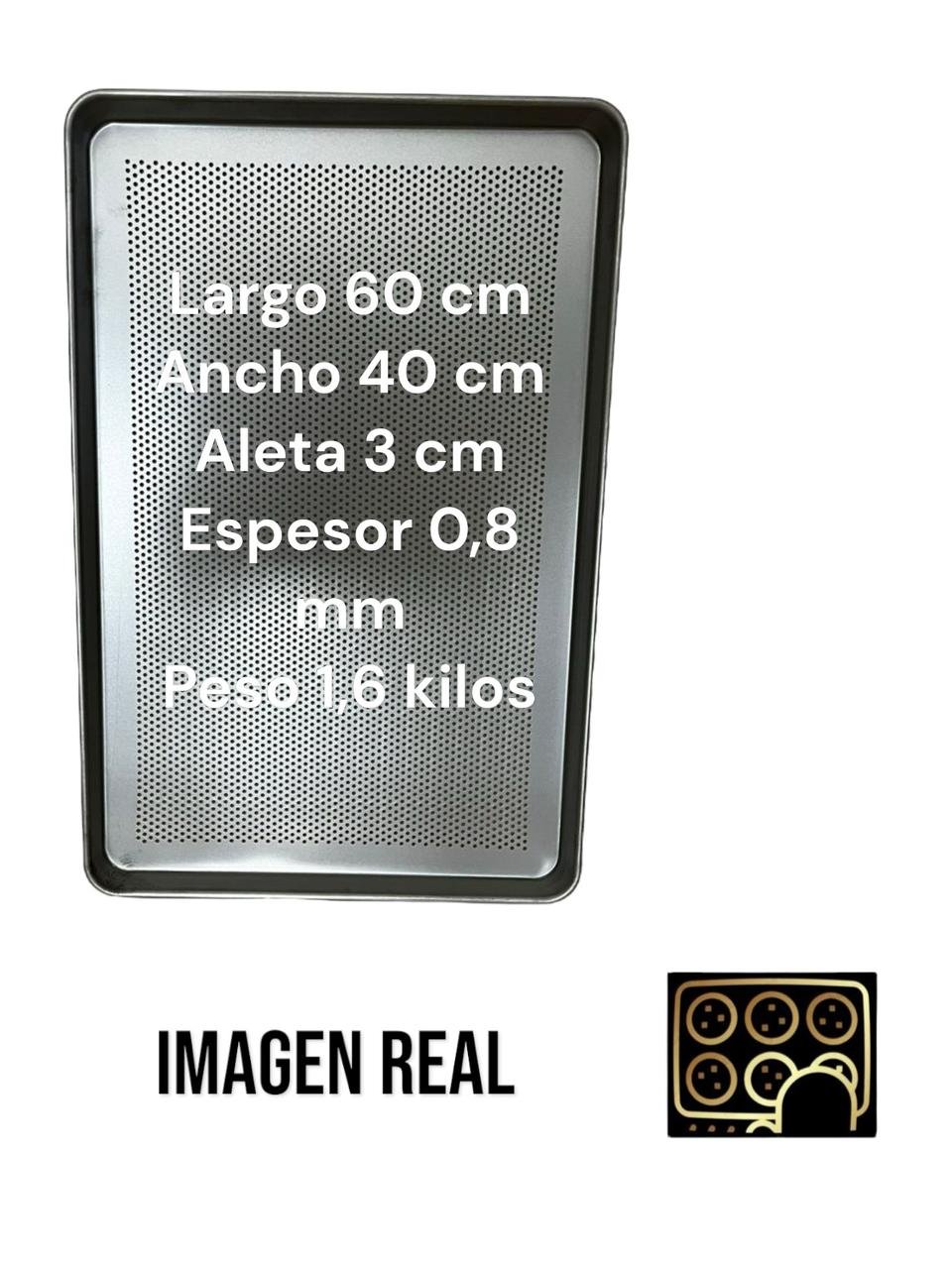La bandeja 60×40 perforada para panadería, pastelería y horneado en general, tienen una pestaña de 3 cm y un espesor de 0.8 mm real, de material aluminio/acero ALUMSTEEL de alta densidad, son aptas para carros bandejeros. Su diseño robusto garantiza que no se doblarán, brindando una resistencia excepcional. Al tenerlas en tus manos, comprobarás que has realizado una compra inteligente y duradera.